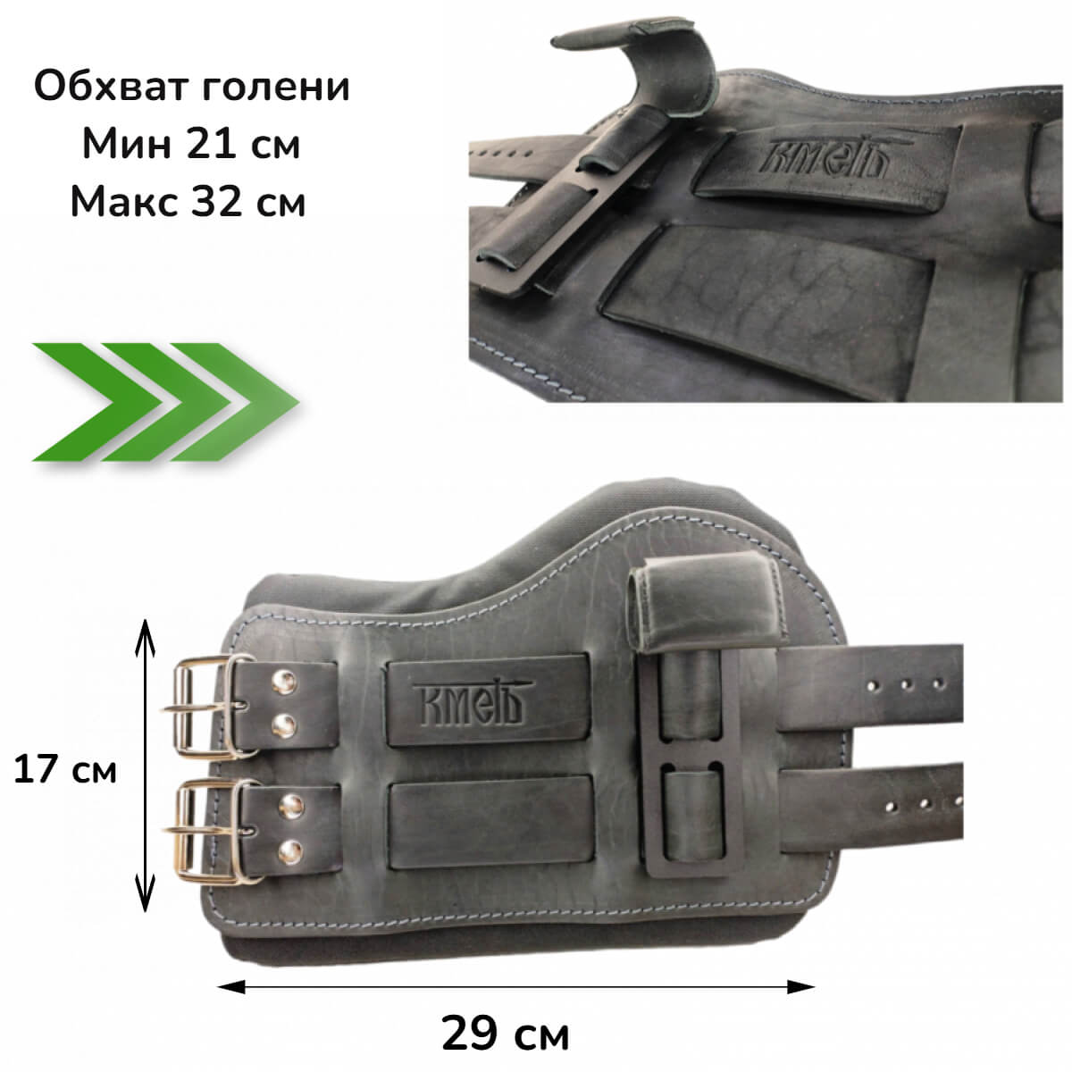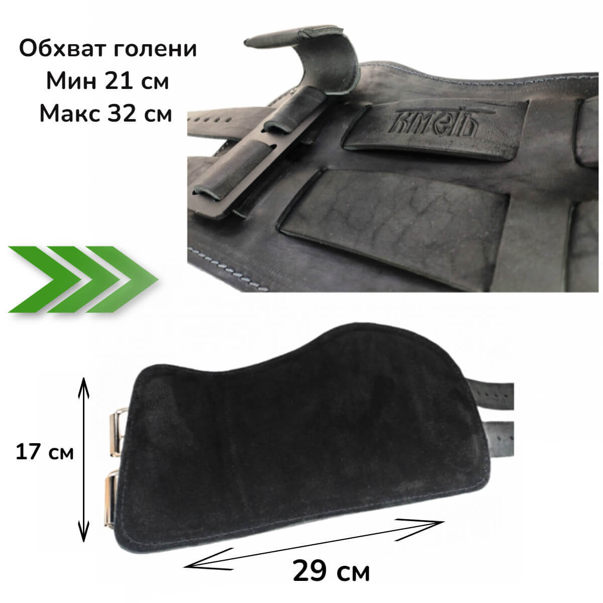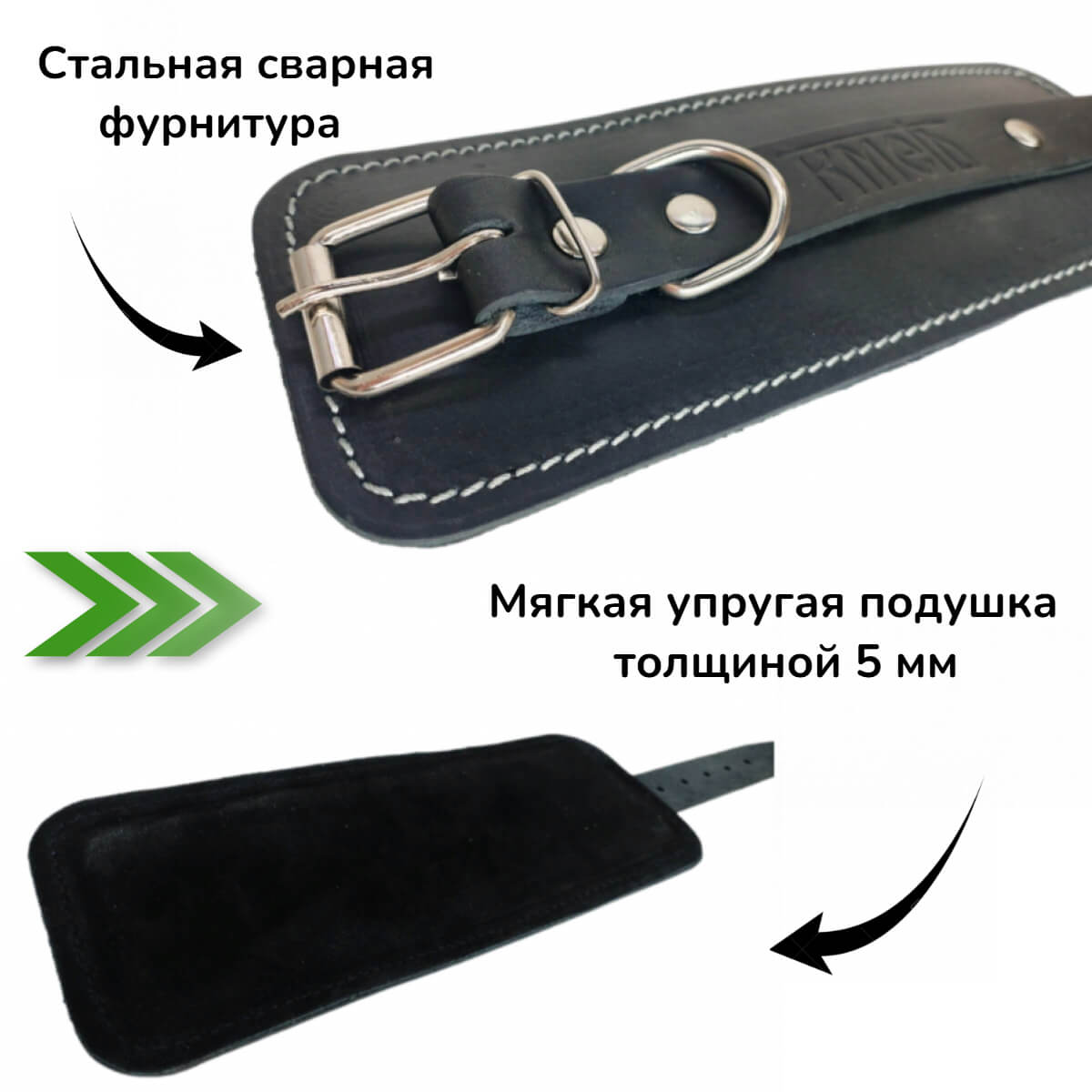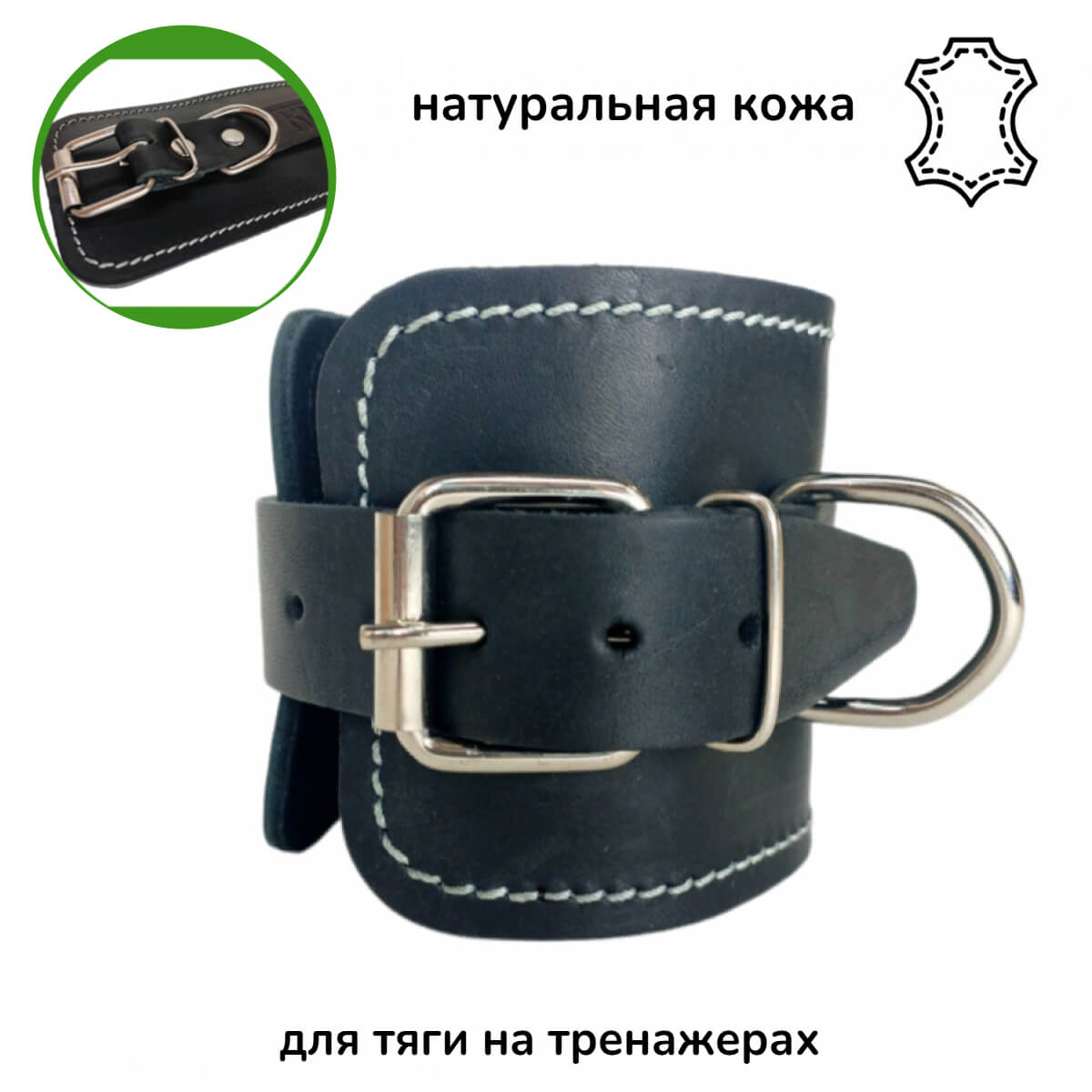 Производство: Россия Комплектность: шт Используется для силовых упражнений на грузоблочных тренажерах. Манжета изготовлена из толстой кожи (КРС), подкладка- кожа замша, мягкая вставка - пенолон 10 мм. Общая толщина манжеты 15 мм Полукольцо стальное сварное 5 мм. Фиксация манжеты на голени - пряжка стальная 35 мм.