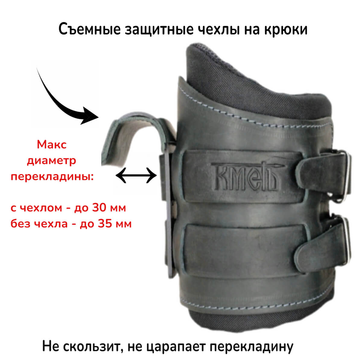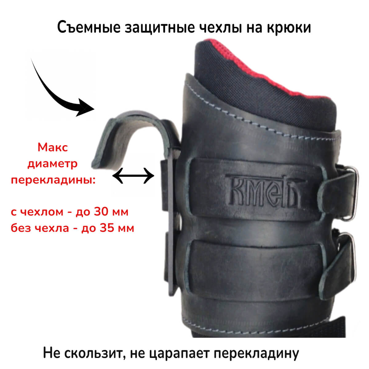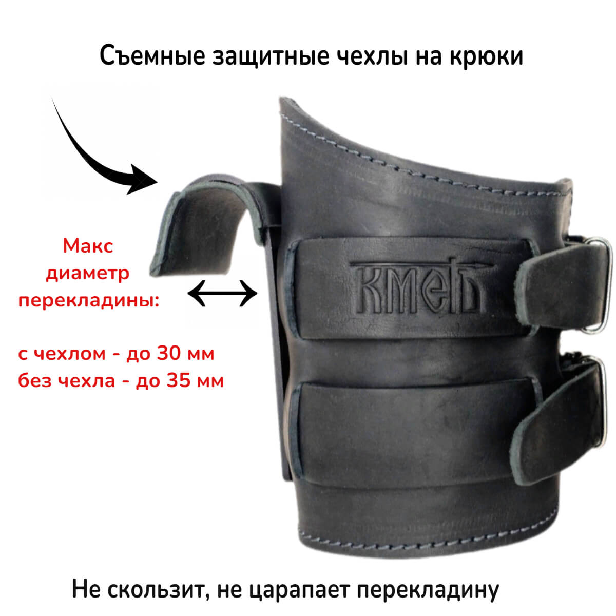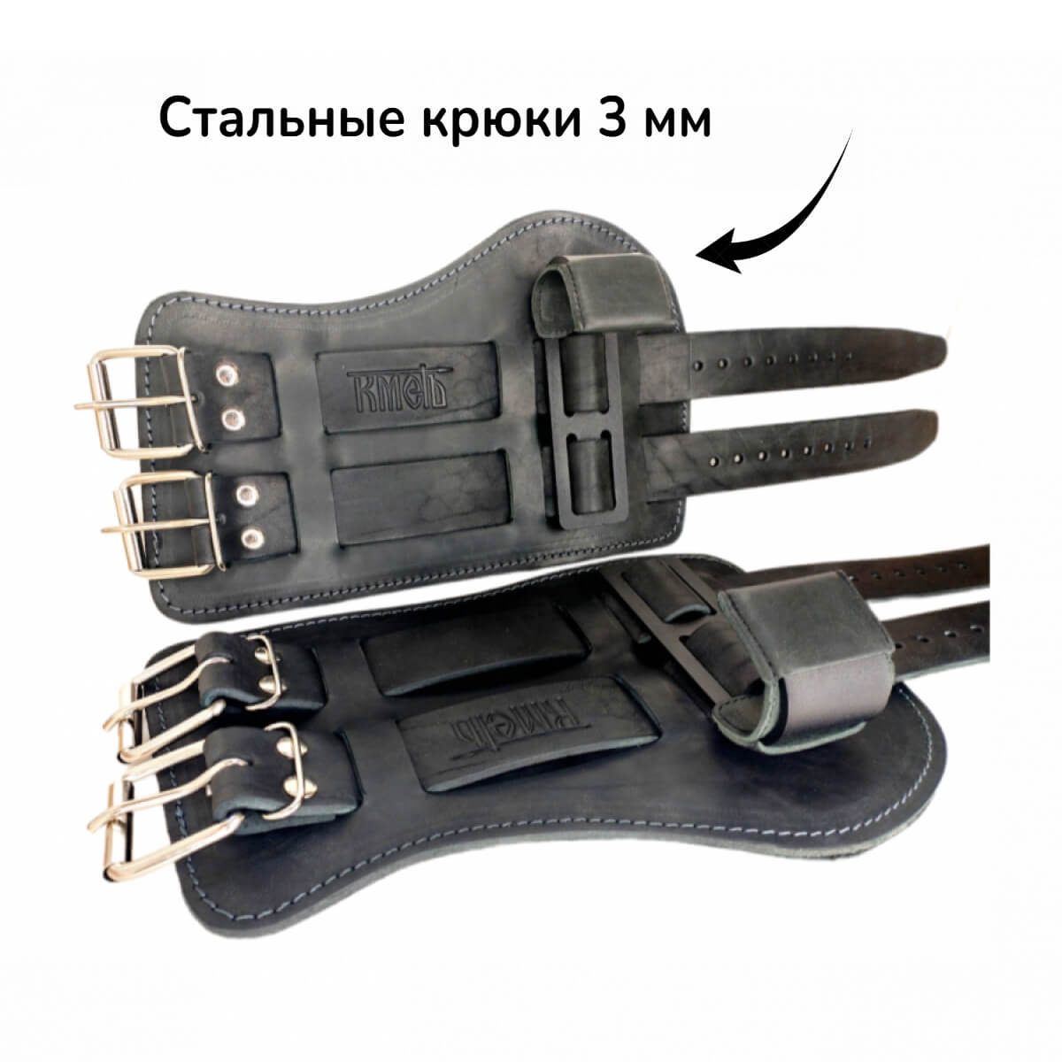 Тяга атлетическая с крюком предназначена для стабилизации и усиления хвата при выполнении тяговых и подтягивающих упражнениях. Изготовлены из высокопрочной натуральной кожи толщиной 3.5 - 4.0 мм. Внутренняя сторона отделана замшей. На месте запястий предусмотрена мягкая вставка для снижения возможного дискомфорта во время длительного выполнения упражнений. Сами крюки из стали, максимальный диаметр перекладины - 35 мм. Максимальная рекомендуемая нагрузка до 120 кг. Размер манжеты универсальный, подходит на любую руку.