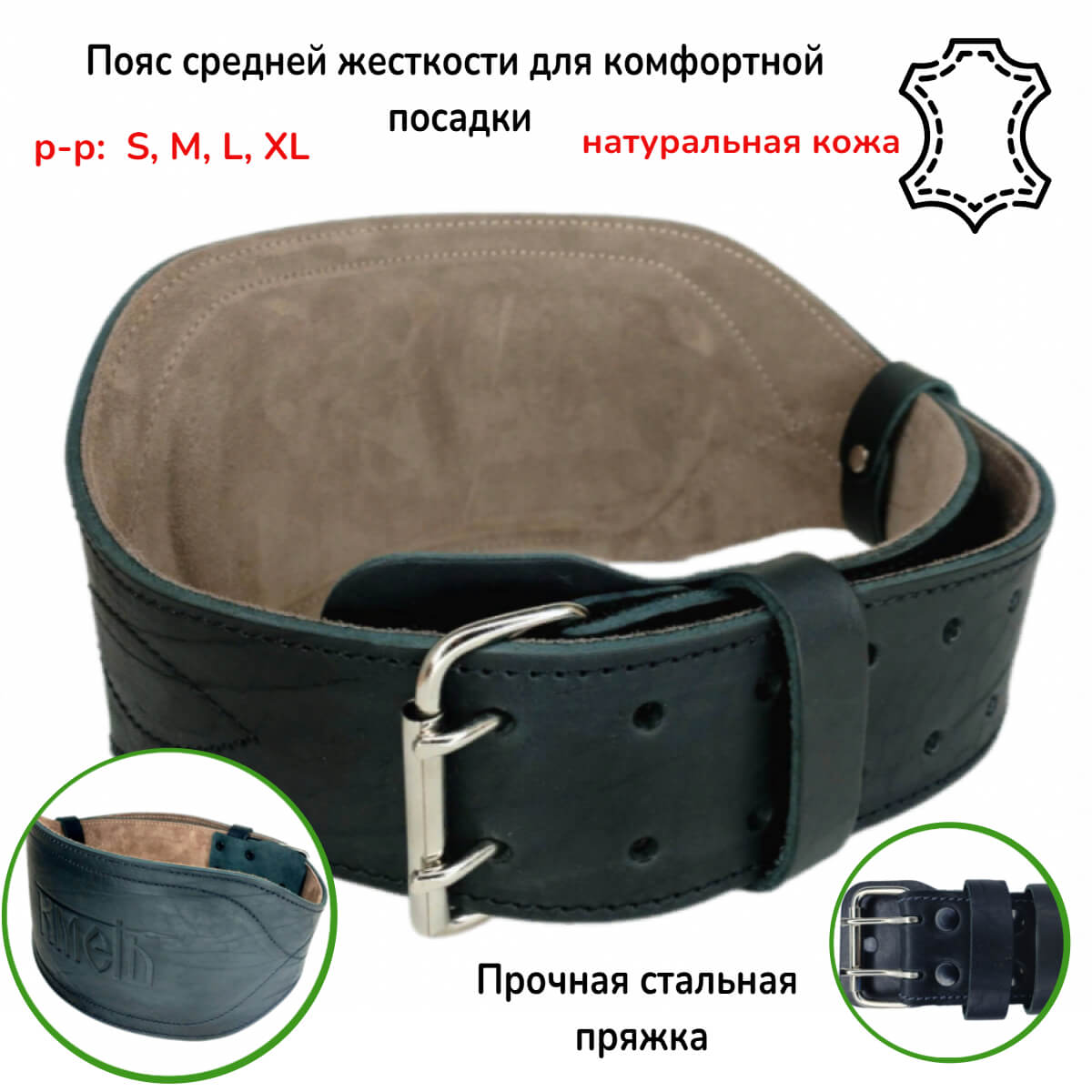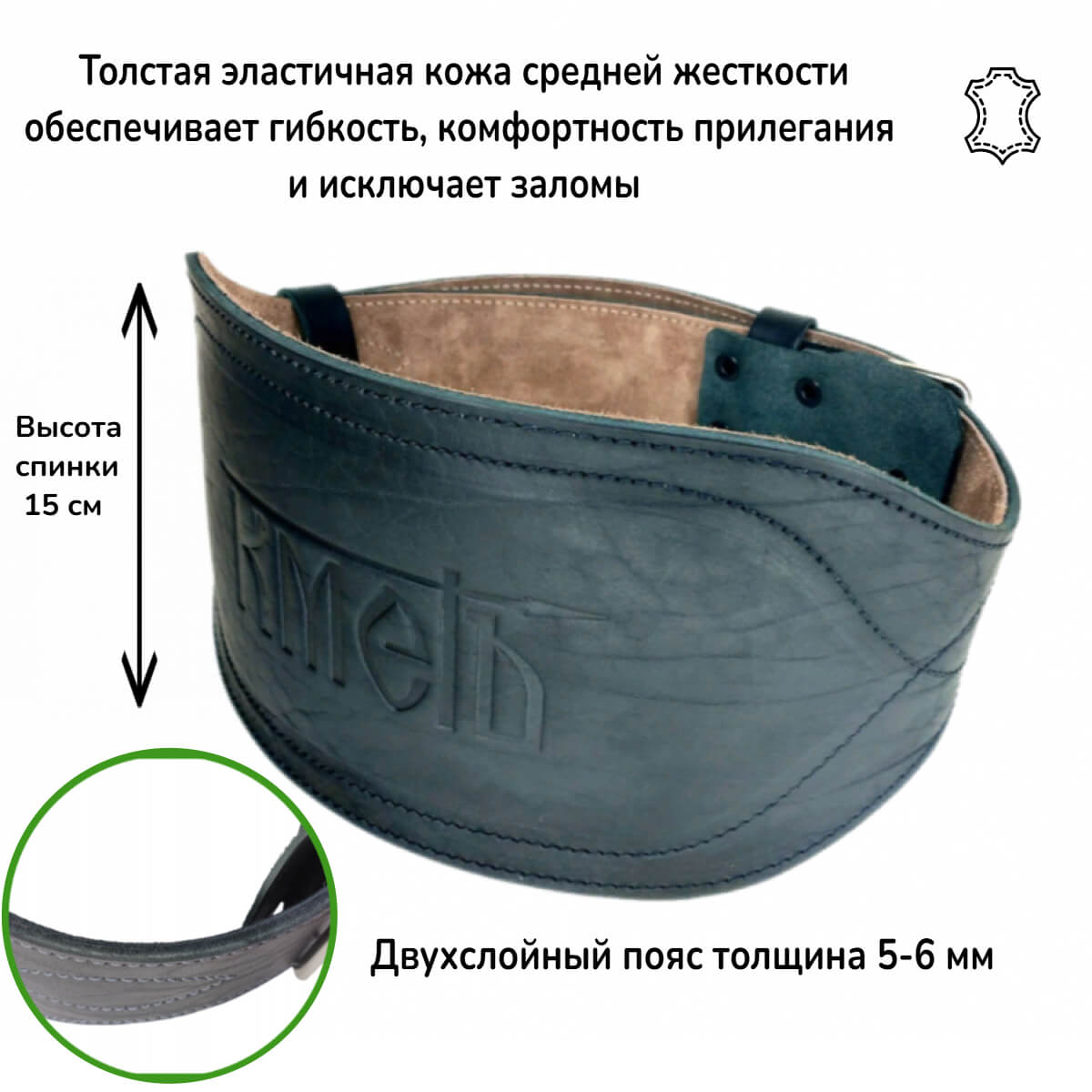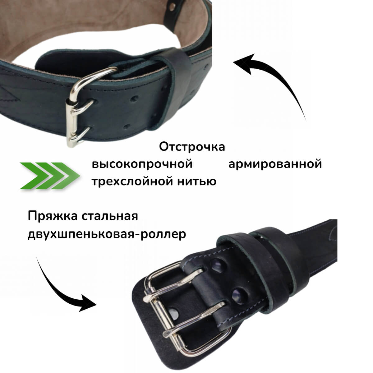 Двухслойный пояс из высокопрочной натуральной кожи КРС средней жесткости - незаменимый аксессуар для профессионалов и любителей спорта. Позволяет снизить риск получения травм при больших нагрузках, обеспечивает поддержку мышц спины и живота при поднятии тяжестей и выполнении сложных упражнений. Длина пояса регулируется 10 парами отверстий и стальной двухшпеньковой пряжкой – роллером. Расположенной под пряжкой “язык” защищает ее от контакта с телом, что позволяет избежать случайного защемления.