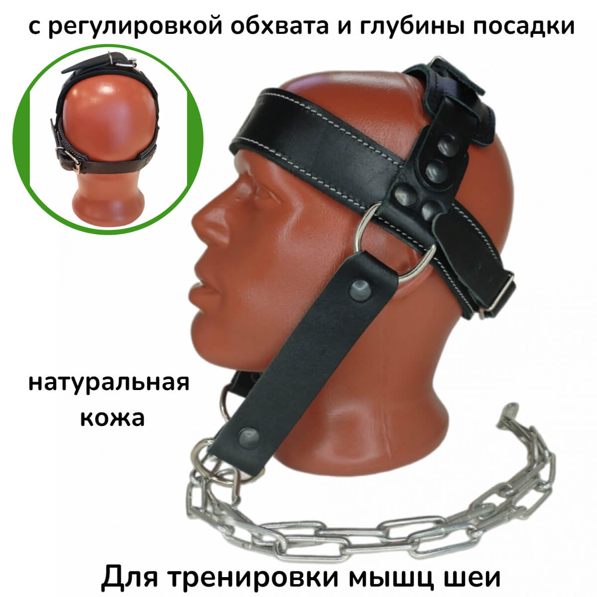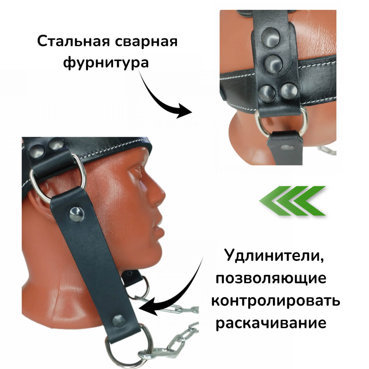 Лямка для тренировки мышц шеи это тренажер, который позволяет натренировать мышцы шеи, меняя угол нагрузки и вес. В тренажере используются регулировки обхвата головы и глубины посадки лямки, что позволяет максимально точно обеспечить комфортную посадку лямки на голове. Используется для тренировок со свободными весами.