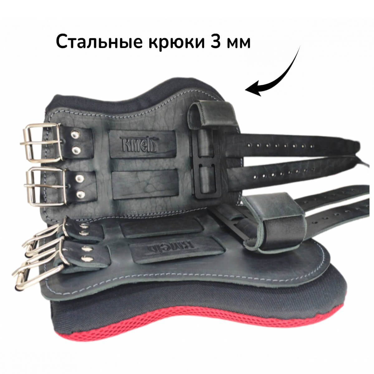 Производство: Россия Комплектность: пара Специальное поддерживающее приспособление, позволяющее безопасно и без усилий находиться в положении вниз головой. Используется для разработки прямых и косых мышц брюшного пресса, а также как дополнительнаяя нагрузка к тренировкам на разные группы мышц под нестрандартным углом. Пластина: верх - кожа (КРС). Подкладка: кожа-замша Мягкая подкладка - пенолон Крюк: Материал сталь ; диаметр перекладины 35 мм; максимально допустимая нагрузка на крюк – 100 кг Рекомендуемый вес пользователя ( вес комфортного висения) - до 90 кг Диапазон регулировки по щиколотке - 20-28 см