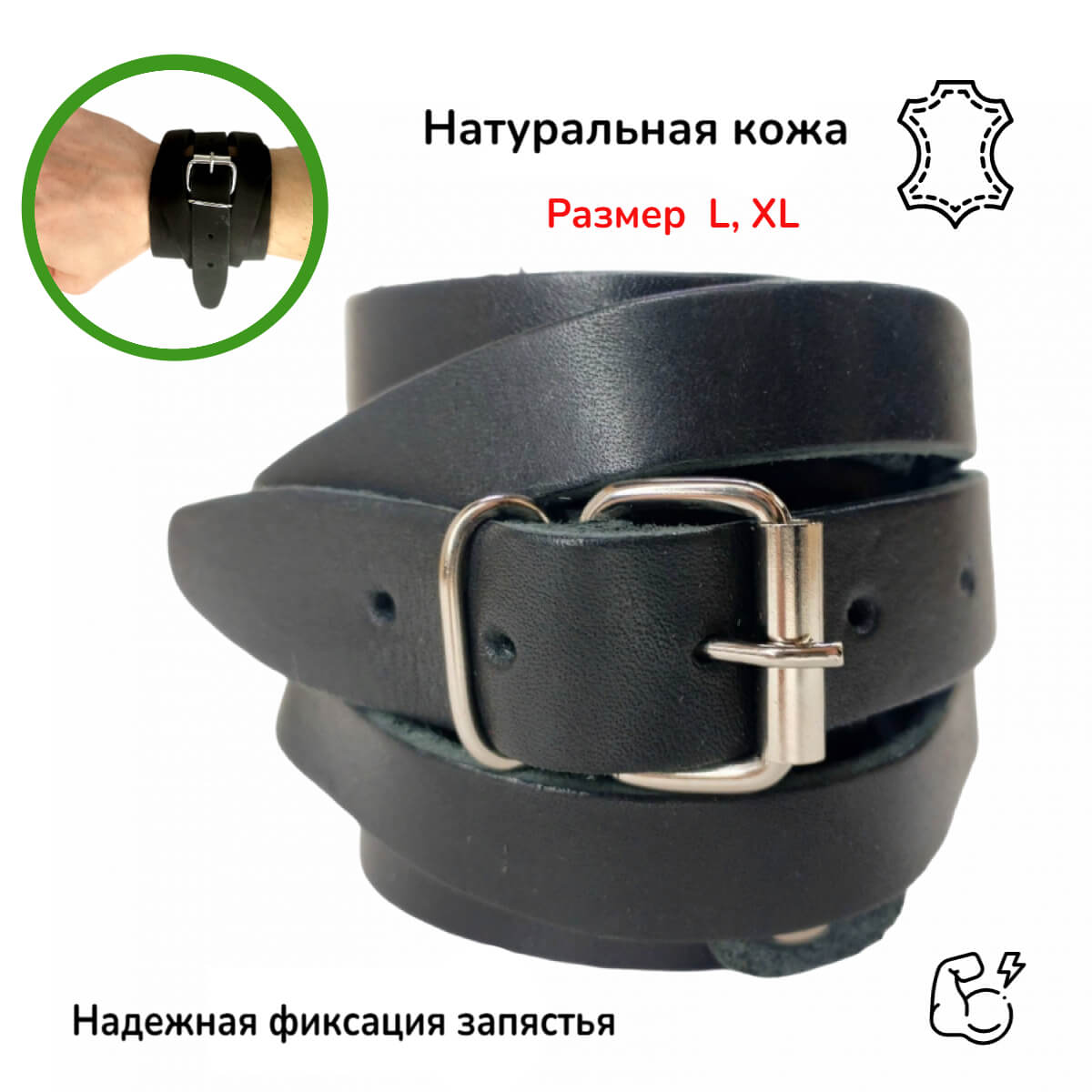 Размеры: S - 10 см. и менее M - 11 см. L - 12 см. и более Материал: кожа, неопрен